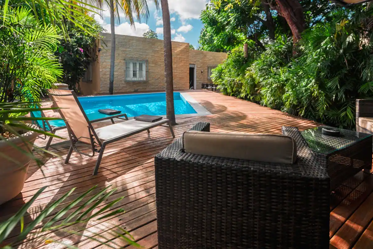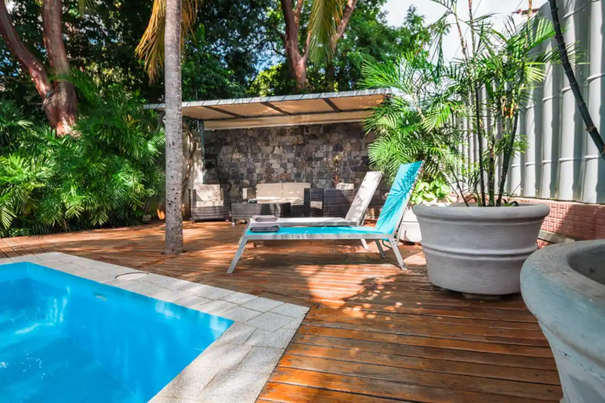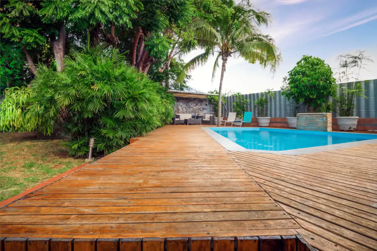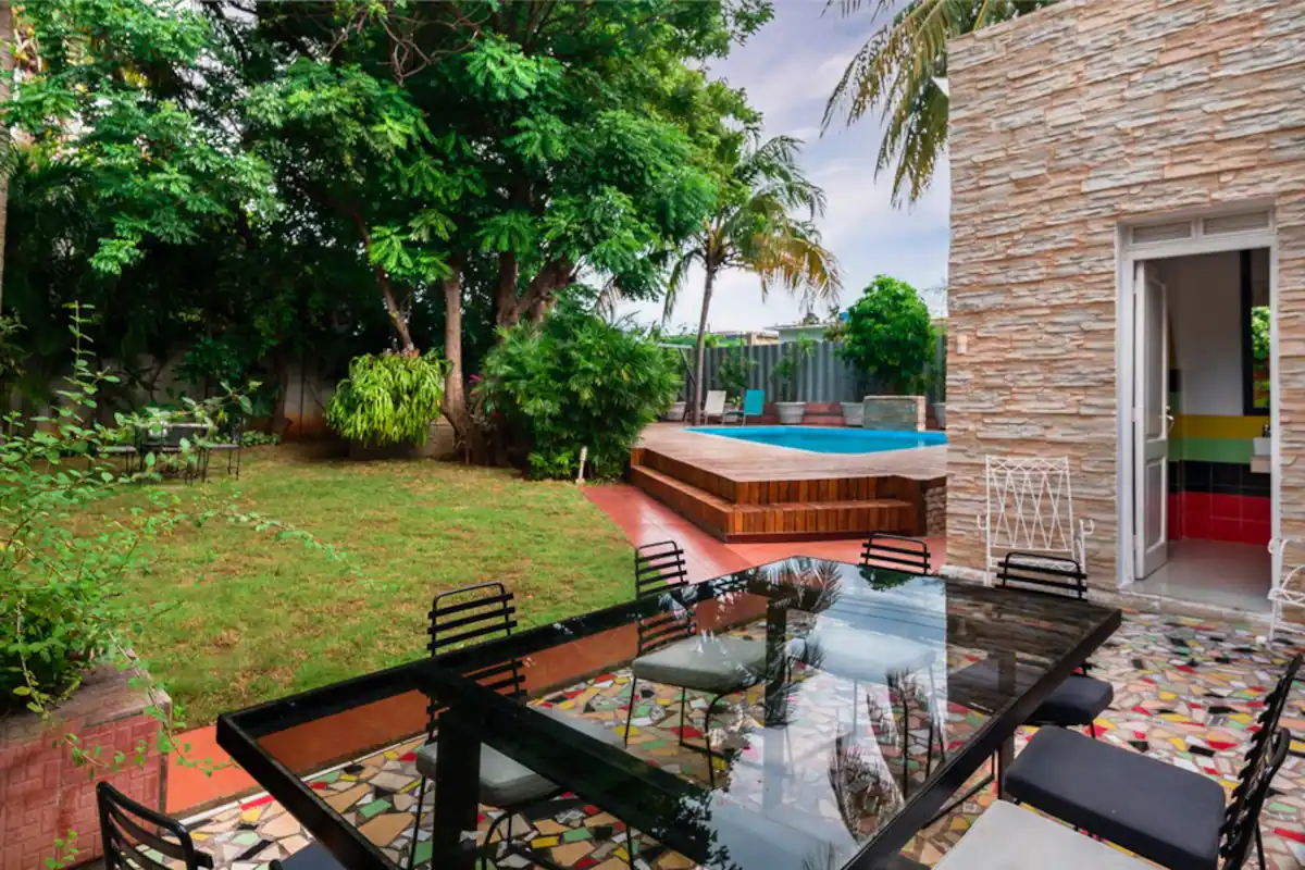 Unwind amidst the serene surroundings by the inviting pool and lush gardens. The poolside living area provides the perfect space to gather with loved ones and create lasting memories.