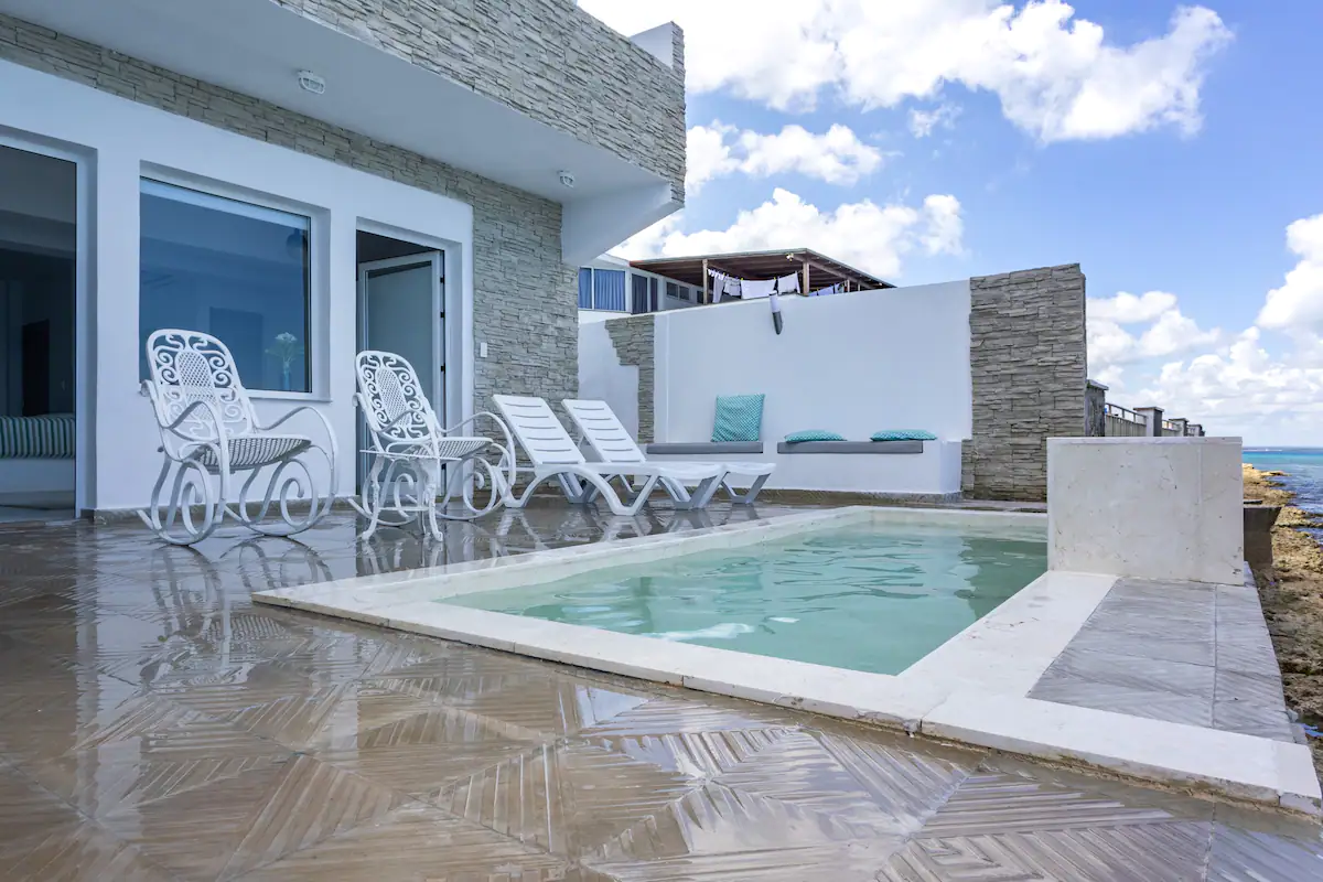 Embrace the charm of the Cuban coast at this unique villa, meticulously converted from a historic fisherman’s house. Unwind on your private terrace, just steps from the shore, and soak up the breathtaking seascapes. Descend the staircase for a refreshing dip in the crystal-clear ocean, or relax by your own small marble jacuzzi/pool on the ground floor terrace.