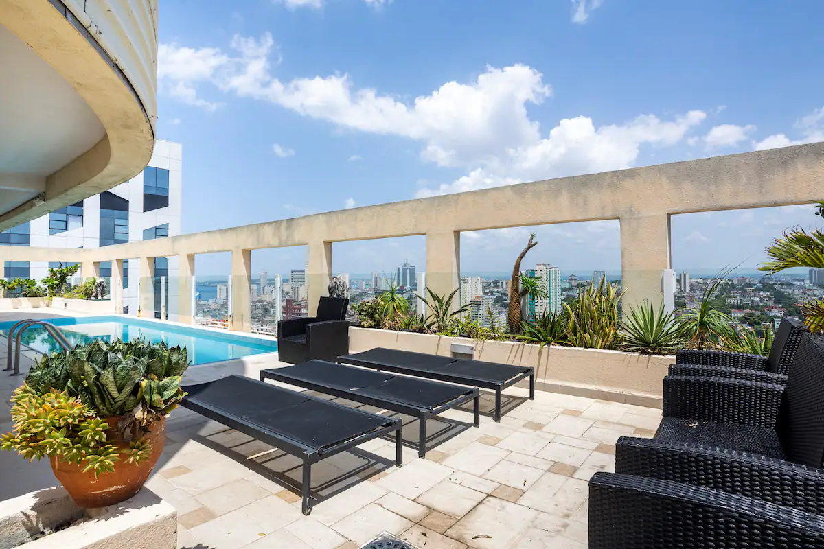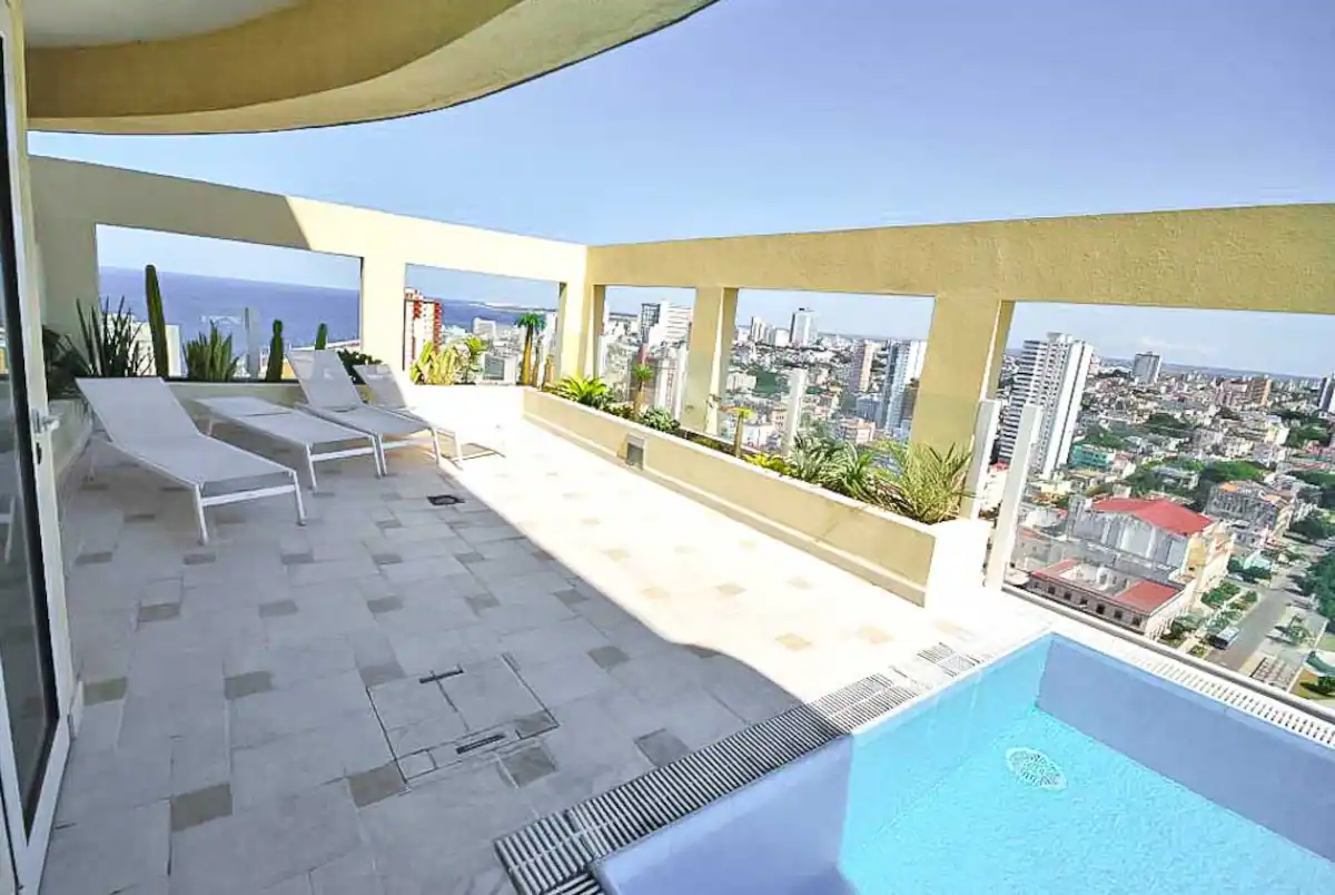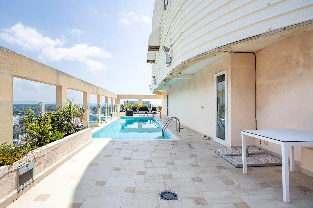 Luxurious penthouse located on the first line of the Havana Malecon, in Vedado. The property is located very close to the main points of interest in Havana, including nightlife centers, clubs, cafes, hotels, and banks.